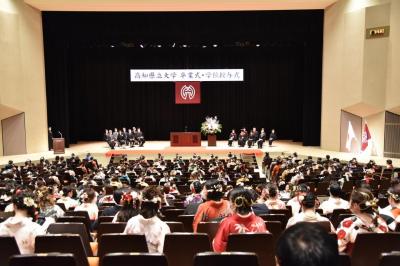 3月20日(月曜日)、4年ぶりに全学部が一同に会し卒業式が執り行われ、本学部では41名が無事に卒業することができました。全学での式典の後、学部ごとに分かれ学部長から一人一人に学位が授与されました。また、栄養士・管理栄養士課程を優秀な成績で卒業する学生に対して、(社)全国栄養士養成施設協会が毎年表彰している会長表彰が尾形優奈さんに授与されました。 記念撮影では全員が久々にマスクを外して笑顔あふれる晴れやかな姿でした。